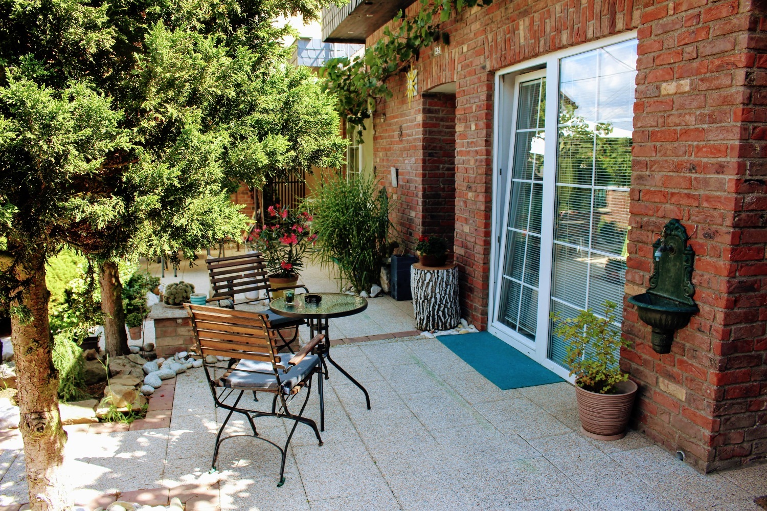 Posezení na přední zahradě i terasách zadní zahrady.