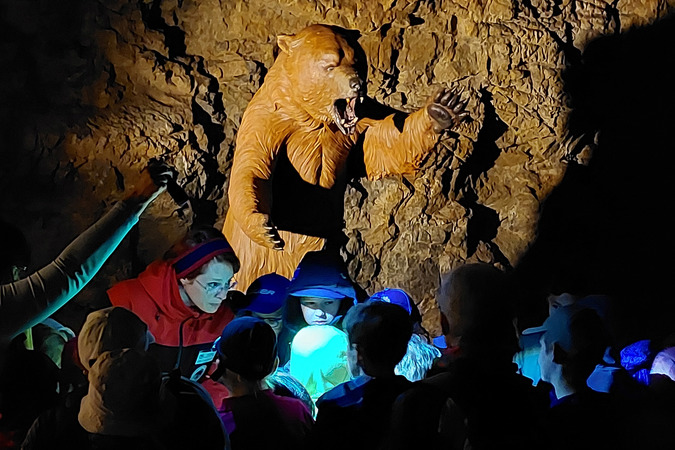 Dětské prohlídky „Medvěd Bruno a stroj času“ připravuje Správa jeskyní České republiky od 1. července 2023 vždy ve středu a sobotu v 16:30 a 16:45.Nutná je rezervace nejméně den předem, buď na telefonu 516 439 111 či e-mailu vypustek.rezervace@caves.cz.