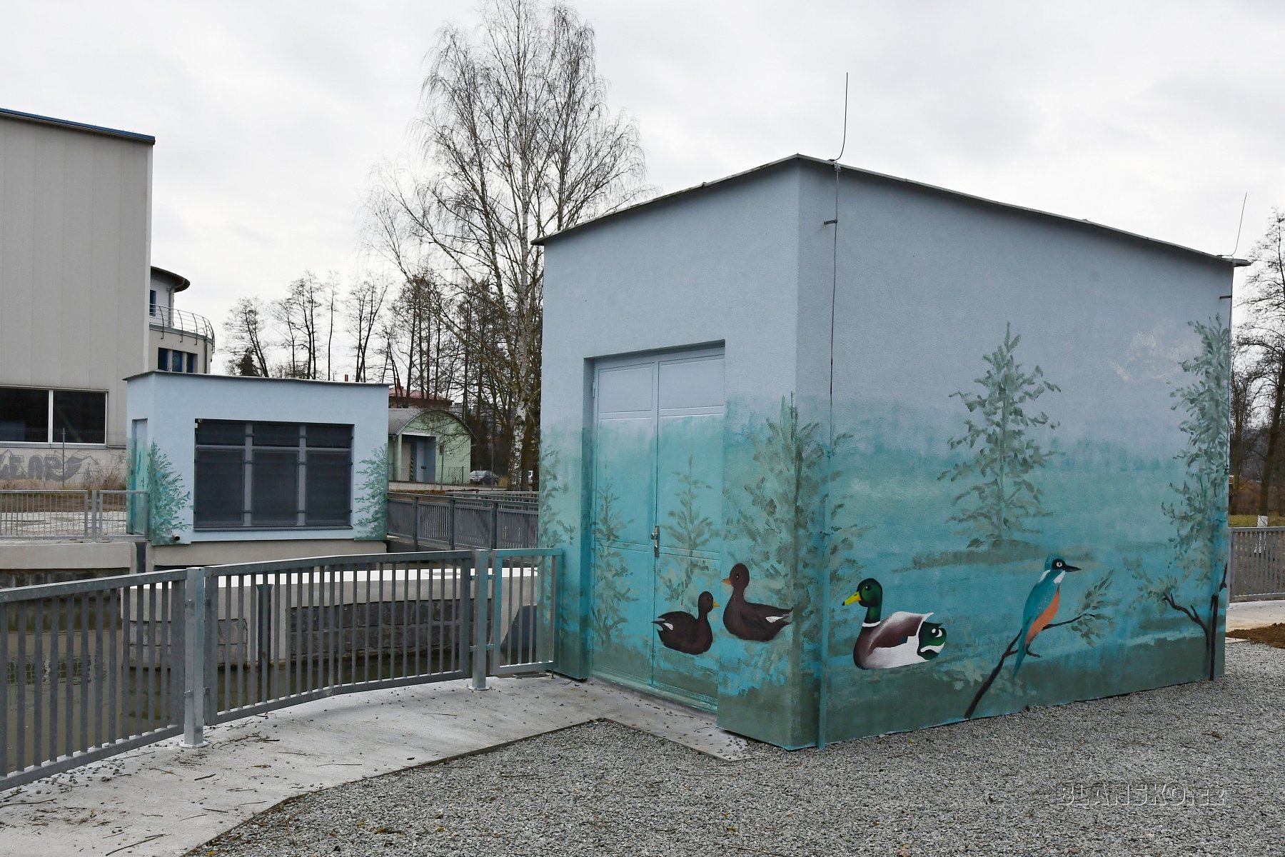 „Pomalování plochy čtyřiceti metrů čtverečních bylo pro mladé výtvarníky ze ZUŠ Blansko velkou výzvou. Na žádost Povodí Moravy jsme připravili několik návrhů, z nich vybrali ten nejlepší a na jeho základě jsme namalovali svět na břehu řeky. Na zdech technických budov jezu se tak zabydleli ledňáčci, kachny divoké, volavky, nechybí ani stromy. Pečlivě jsme vybíraly, který druh vodního ptactva kam umístit,“ popsala práci svých třinácti svěřenkyň výtvarnice Juračková.