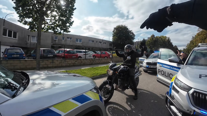 Do pronásledování se postupně zapojilo několik policejních vozidel, kterým se ve spolupráci s pracovníky operačního střediska nakonec podařilo motorkáře zastavit v Brně na ulici Hudcova, kde mu hlídka vytvořila účinný zátaras. V tu chvíli už neměl motorkář šanci pokračovat.